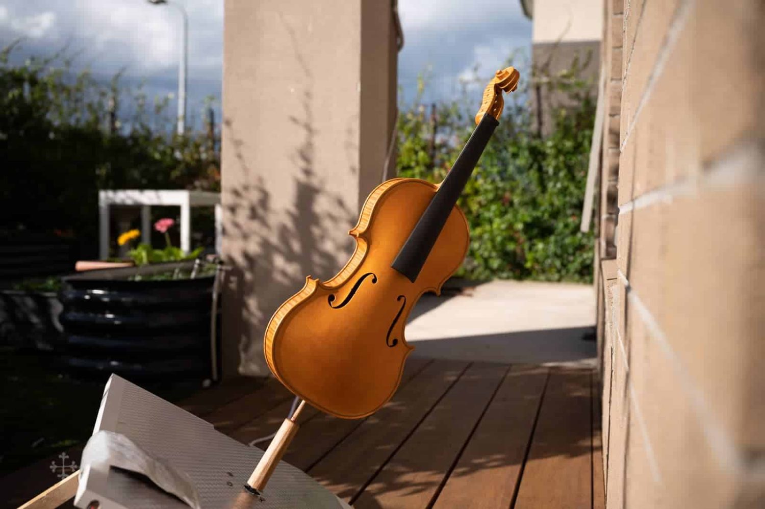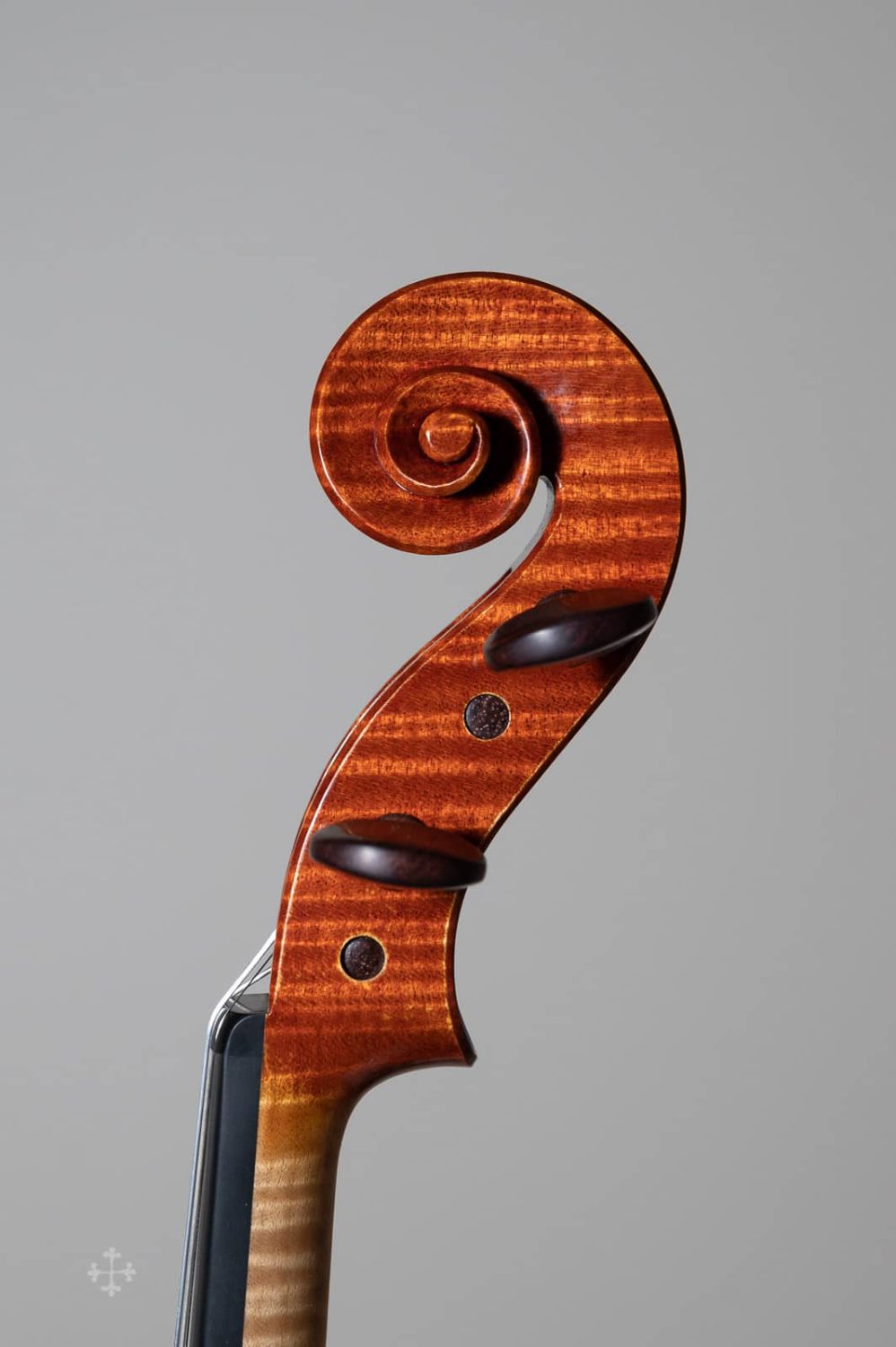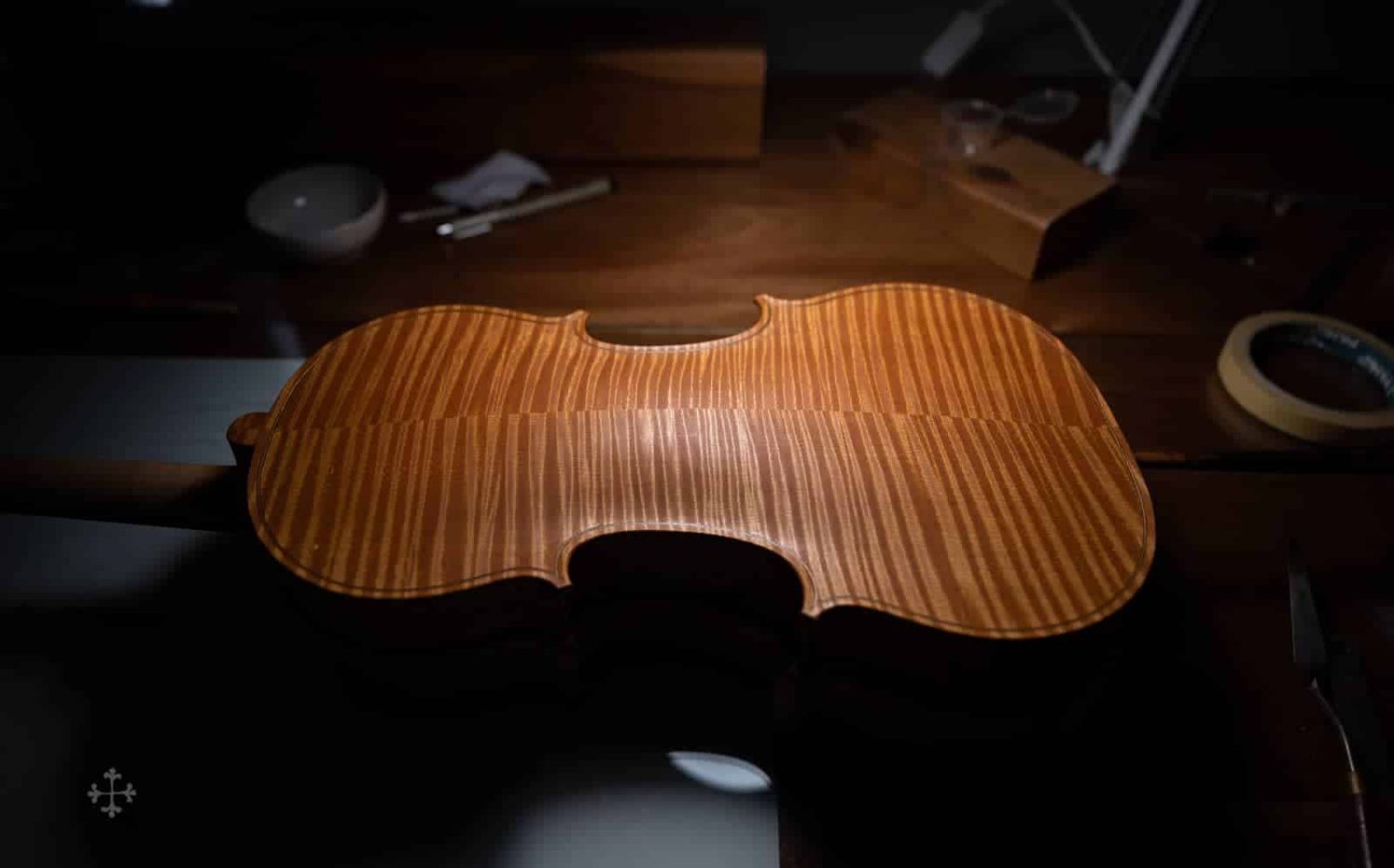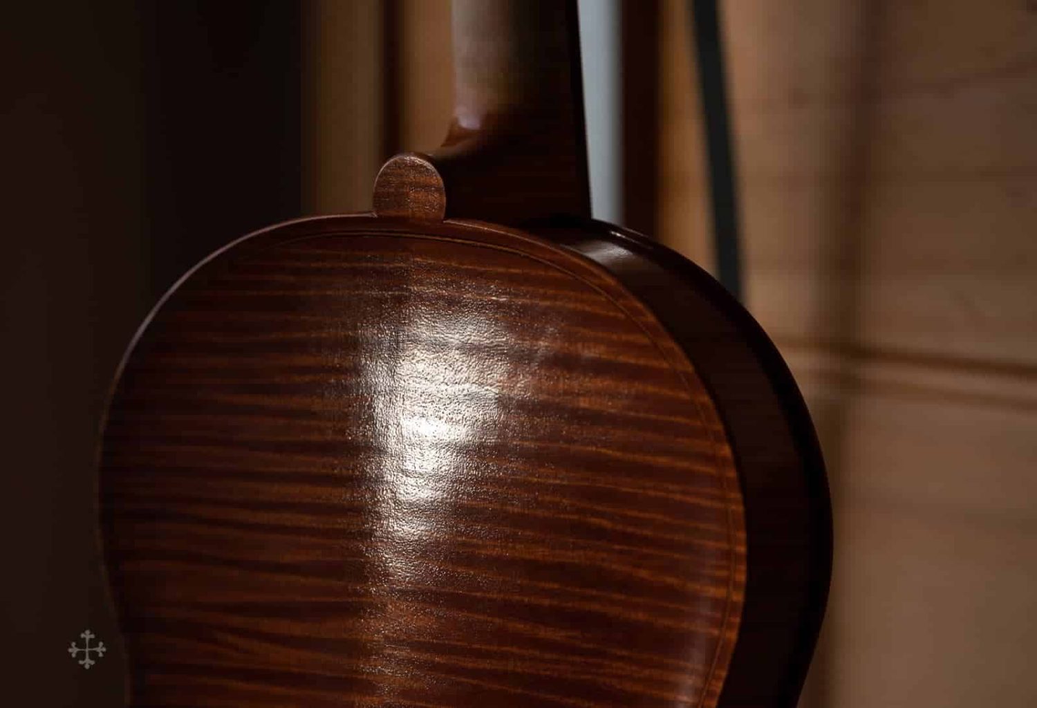 该作品由北京王小姐定制于2017年。作品编号:JY43,昵称“Biberach”。该作品的琴型设计以及细节比例,大多来自于2022年游学德国Ulrich Hinsberger工作室时所绘制。该工作室位于Biberach小镇,故以此为乐器命名。琴型为个人化的A.stradivari P 模具,木材选择为Bosnia枫木加上Bachmann云杉面板。
