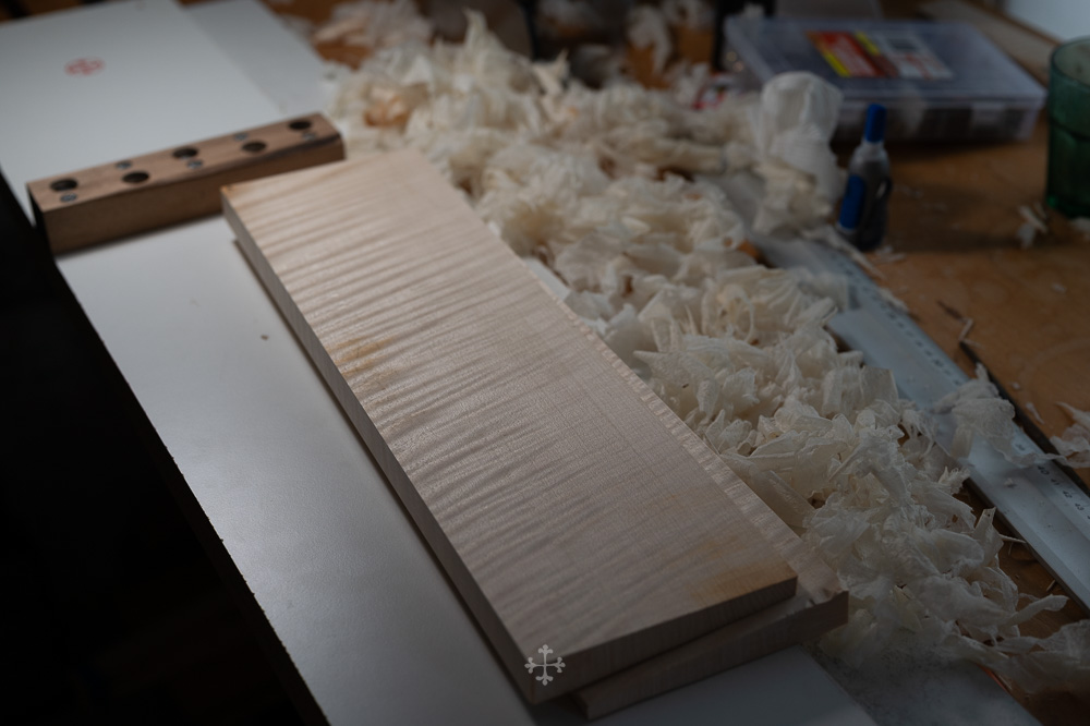 因此,我选择终止这次定制。你在图片中所见的那块材料,正是当时为其准备的枫木。在我看来,那是一块极为难得的顶级材料,但我同样理解,每一位定制者都有自己的判断与执念。我也期待他未来的作品会呈现出怎样的面貌。